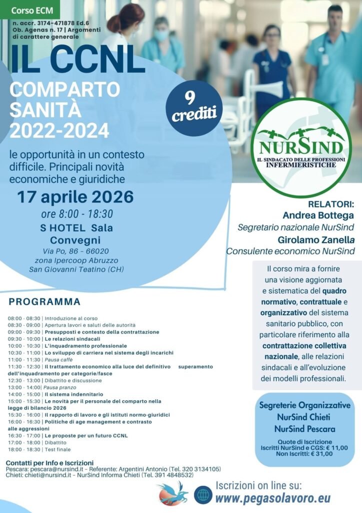 Al momento stai visualizzando CORSO ECM DA 9 CREDITI 17 APRILE 2026: PRINCIPALI NOVITA’ DEL CCNL 2022-2024